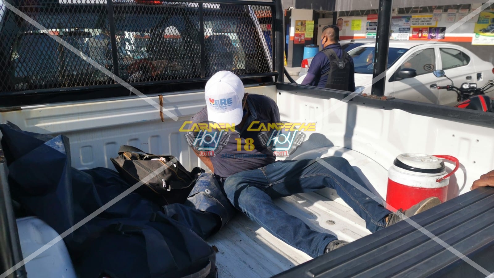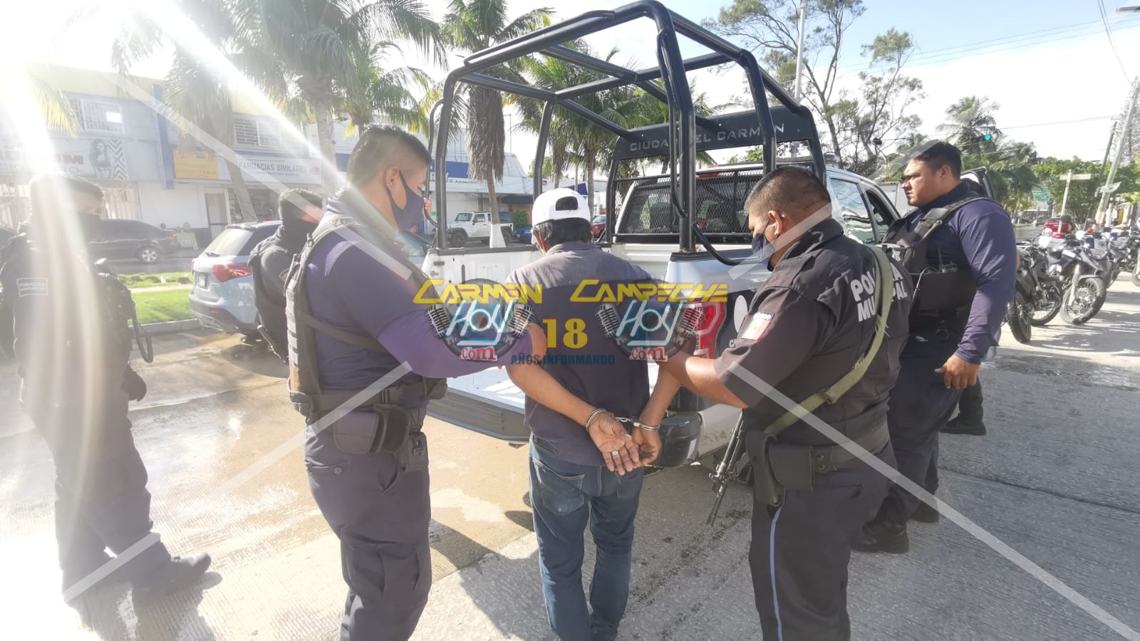 La combi en la que viajaba este hombre fue interceptada por agentes motorizados de la dirección de Seguridad Pública, y un hombre de aproximadamente 50 años de edad que viajaba a bordo de ella fue bajado y detenido.