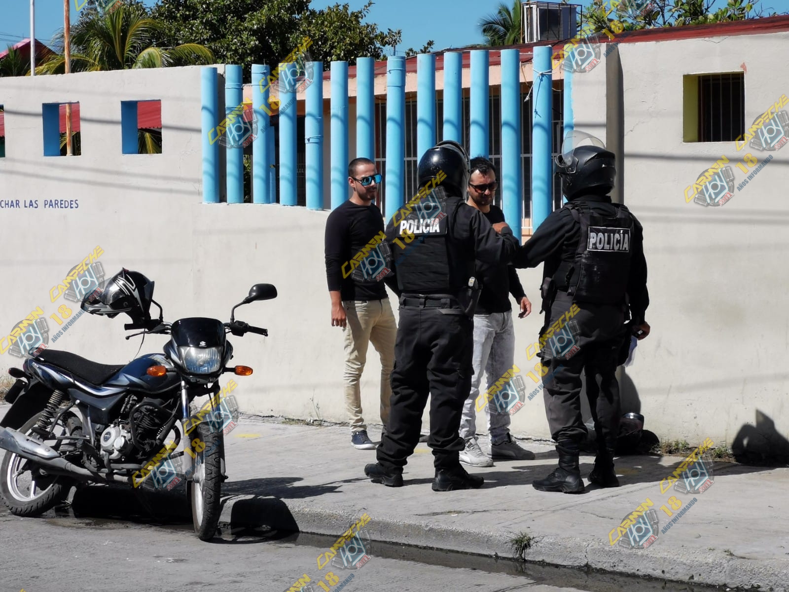 Fue cerca de las 11:50 horas la mañana de hoy jueves, que dos jóvenes de origen colombiano que se desplazaban en una motocicleta Platina, color negro con matrícula de circulación 87CTX6 del estado de Campeche al ir circulando sobre la calle Vicente Guerrero por avenida Periférica Norte de la colonia antes mencionada, fueron interceptados por agentes motorizados de dicha corporación, los jóvenes fueron puestos contra la pared de un kinder y revisadas sus pertenencias.