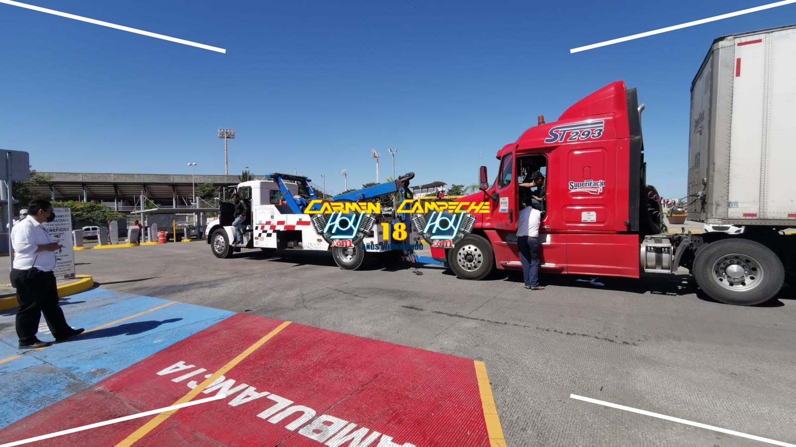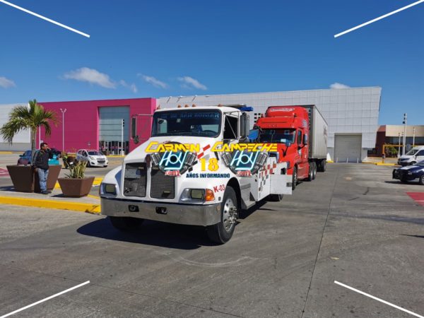 Luego de que fuera captado por cámaras de vigilancia del lugar cuando derribo una pluma de acceso, el chófer del Tractocamión se puso de manera agresiva con los agentes de vialidad y tránsito por lo que estos, solicitaron una grúa para trasladar la pesada unidad al corralón municipal y el caso turnarlo a la vicefiscalía.