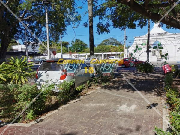 Montado sobre las jardineras del parque Jesús Cervera y con daños en la parte frontal derecha, a la llegada de las unidades de policía, dieron fe de los hechos pues el vehículo fue abandonado por su guiador y tras checar las cámaras de vigilancia de la Policía.