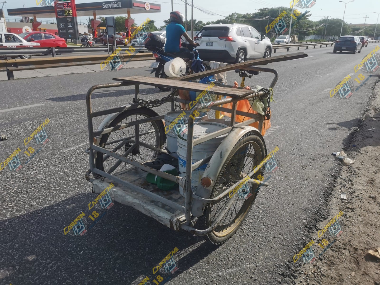 Un hombre de aproximadamente 65 años de edad, fue arrollado cuando se desplazaba en su triciclo sobre la avenida 4 carriles por el guiador de una motocicleta en presunto estado de ebriedad.