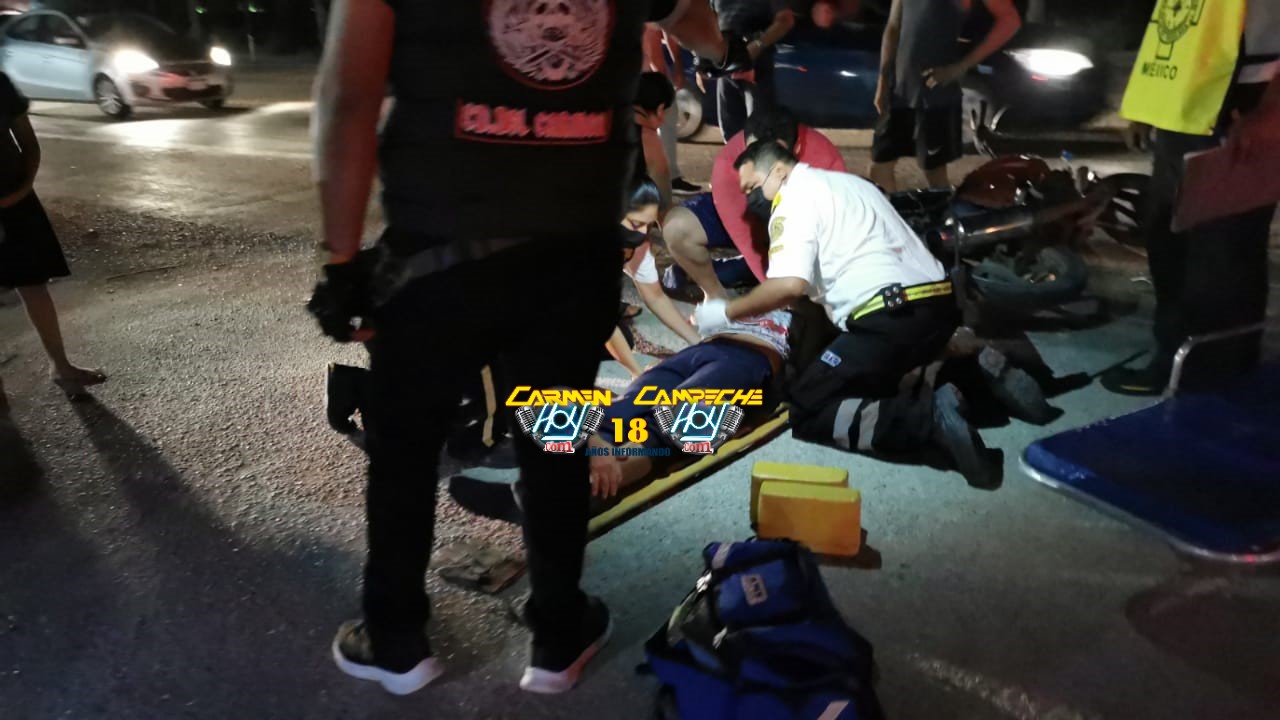 Los hechos se registraron cerca de las 20:10 horas cuando el conductor de una Camioneta Ford F150, color blanco, con placas de circulación CR-42-107del estado de Campeche, transitaba sobre el carril hacia Ciudad del Carmen de la vía Federal cuando al llegar a la altura del kilómetro 10, intentó ingresar al fraccionamiento “Mar azul” pero al hacerlo sin tomar las debidas precauciones, terminó por cerrarle el paso al guiador de una motocicleta Italika, color naranja, sin matrícula, que circulaba de isla aguada hacia Carmen.