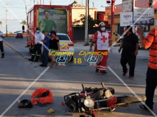 Los hechos ocurrieron alrededor de las 7:00 horas la mañana de hoy jueves, y según refirieron testigos que presenciaron el accidente, los dos jóvenes se desplazaban a exceso de velocidad de una motocicleta Italika, color rojo con matrícula de circulación 60CYD2 del estado de Quintana Roo sobre la calle 53 con dirección a la Avenida Boquerón del Palmar, pero justamente al llegar a este cruzamiento, los jóvenes no hicieron su respectivo alto total, por lo que terminaron impactándose de frente contra el costado lateral izquierdo de la caja de carga de un camión por piedad de la compañía “Bepensa”, con matrícula de circulación CR-62-431 del Estado de Campeche.