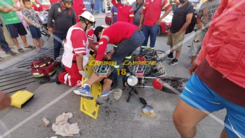 Dos jóvenes resultaron gravemente lesionados al impactar la motocicleta en la que se desplazaban contra la caja de reparto de un camión de la compañía “Bepensa” en calles de la colonia San Carlos.