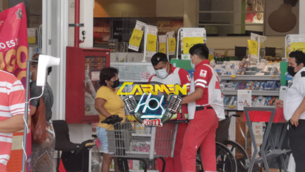 Paramédicos de la Cruz Roja Mexicana atendieron a una mujer de aproximadamente 45 años de edad al interior del supermercado Mega Comercial Mexicana ubicado en la Colonia petrolera luego de que presuntamente parte de un anaquel le cayera encima mientras realizaba sus compras al interior del establecimiento.