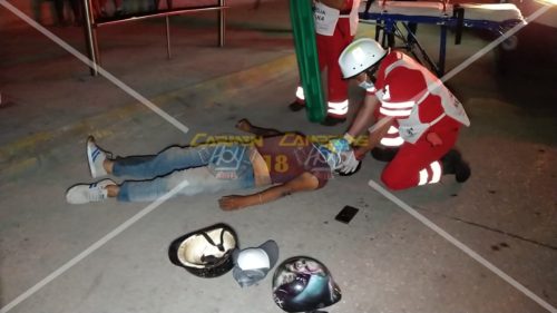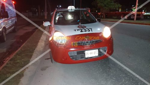 Los hechos se registraron cerca de la 01:30 horas cuando el conductor de una Motocicleta Italika, color negro con verde, con matrícula 32CVL5 del Estado, circulaba en preferencia sobre la Avenida Isla de Tris sobre el carril de baja circulación con dirección a su domicilio al llegar a la altura de una conocida plaza comercial el chofer de un Nissan March, color rojo, con placas 25-44-BFC de Campeche, con número económico 2337 del Sindicato Único de Trabajadores del Volante (SUTV), realiza un cambio de carril sin tomar la precaución correspondiente.