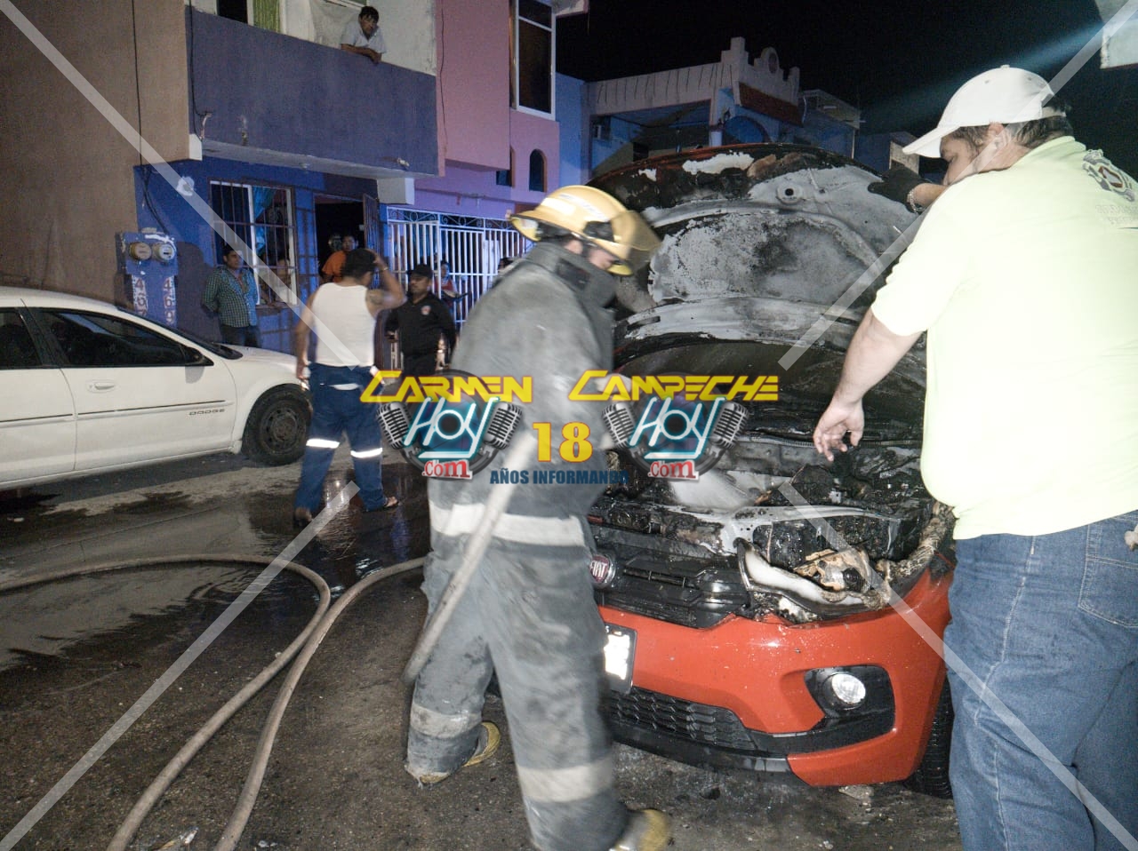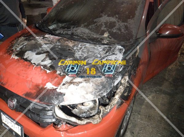 Quienes lograron verificar que se trataba de un vehículo de la marca Fiat Mobi, color rojo con placas de circulación DJU-57-19 el estado de Campeche, el cual se encontraba estacionado frente al domicilio del propietario, luego de varios minutos los elementos de Protección Civil lograron controlar las llamas.