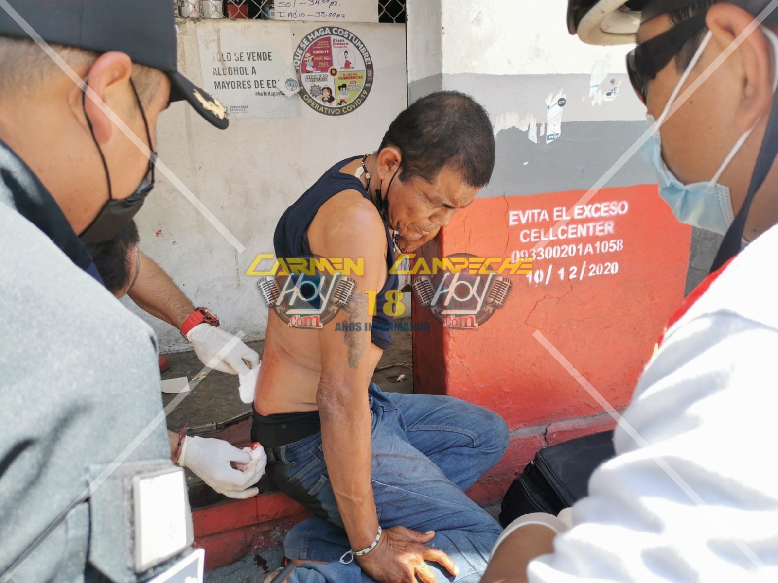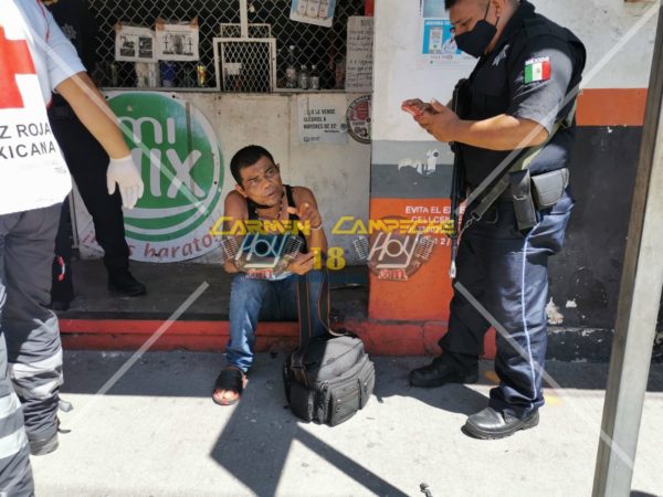 Un hombre que al parecer vive en la indigencia, auxiliado por policías municipales frente al mercado Alonso Felipe de Andrade, pues este presentaba una hemorragia intensa en la parte baja de la espalda luego de ser presuntamente atacado por otro masculino con una arma blanca.
