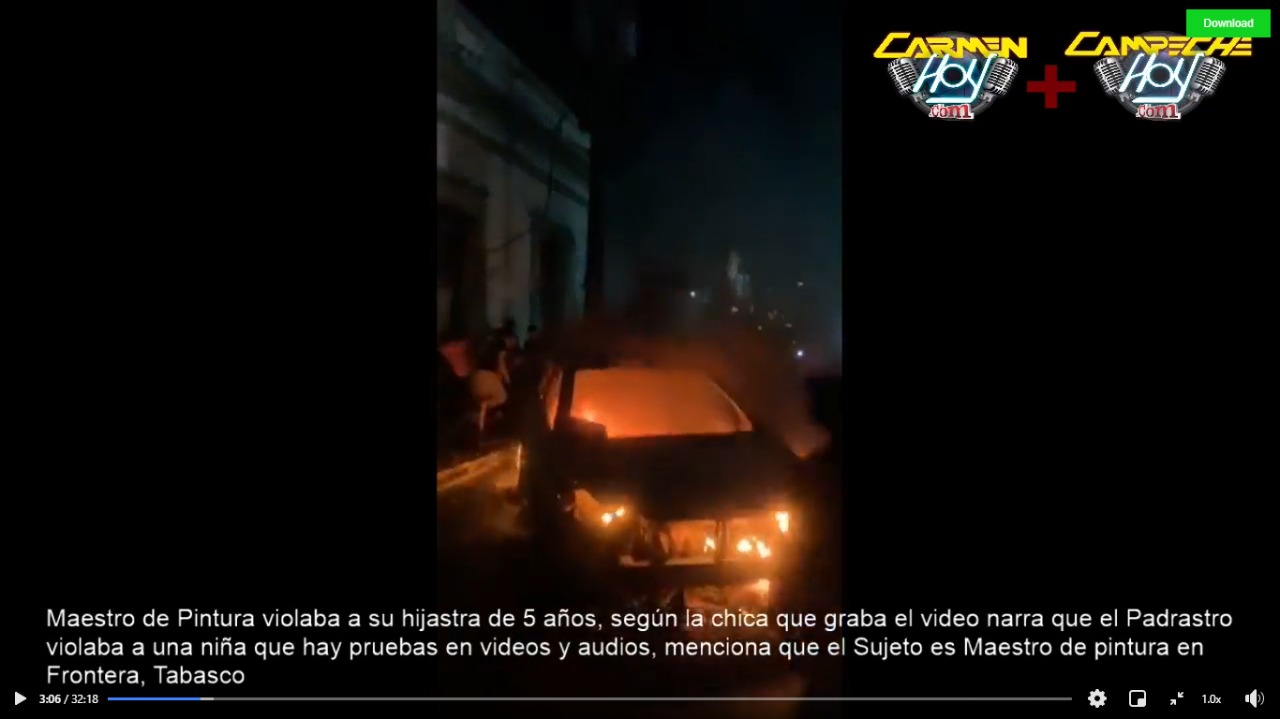 Según la chica que graba el video narra que el Padrastro violaba a una niña que hay pruebas en videos y audios, menciona que el Sujeto es Maestro de pintura en Frontera, Tabasco y le da clases a niños y niñas entre 9 y 12 años y que seria bueno que los padres de estos niños le preguntaran a sus hijos si el maestro no les faltaba el respeto.