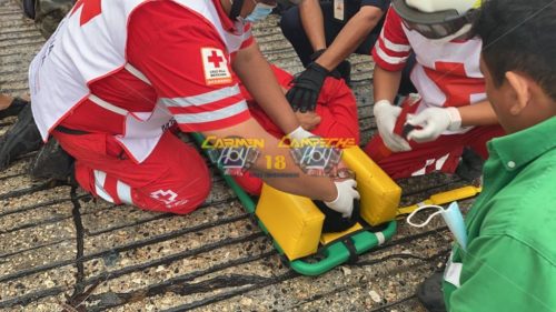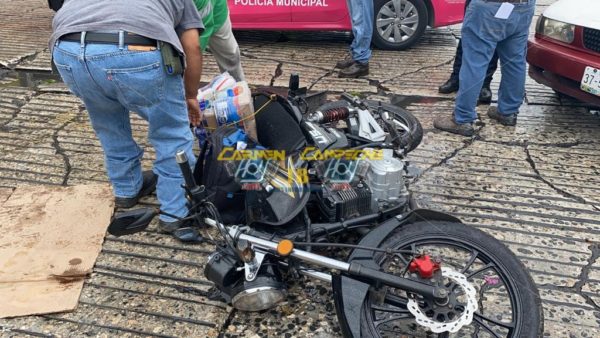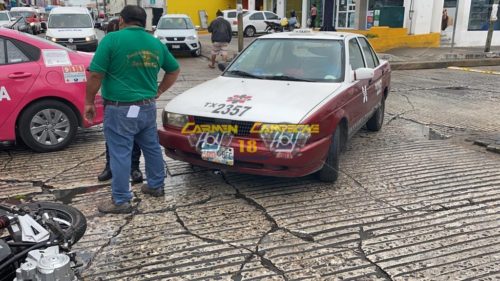 Accidente en calles de la colonia centro, luego de que el chofer de un taxi le hiciera corte de circulación a motociclista y este terminara en el pavimento siendo atendido por Socorristas de la Cruz Roja Mexicana.