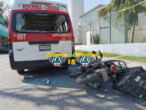 Fue alrededor de las 10:00 de la mañana, cuando sobre la calle Teotihuacán por avenida central del fraccionamiento antes mencionado, el guiador de una motocicleta Italika, color azul con matrícula de circulación 19CVL2 del estado de Campeche, circulaba en presunto exceso de velocidad con dirección al fraccionamiento bugambilias, desafortunadamente al perder la vista del camino, se impactó de lleno contra la parte trasera y medallón de una combi colectiva, Nissan, con matrícula de circulación 19-08-BFC del estado de Campeche y de la ruta “Reforma – Cereso” impactando su rostro contra el medallón trasero de la unidad.