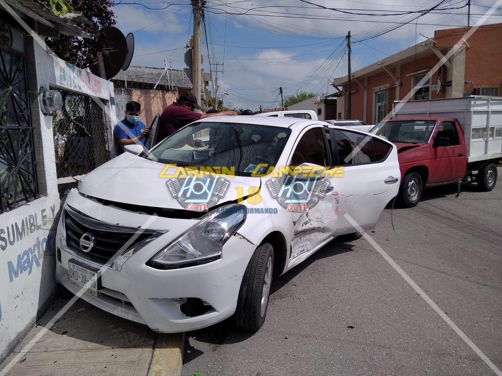 El accidente ocurrió cerca de las 12:30 horas, sobre el cruce de la calle 33 esquina con 42 de la colonia tila, lugar donde el conductor de un vehículo Nissan Versa color blanco, con matrícula de circulación DKD-39-10 del estado de Campeche circulaba sobre la calle 33 mientras el conductor de una camioneta Nissan NP300, color rojo con matrícula de circulación CR-73-133 del estado de Campeche circulaba sobre la 42, y al llegar al cruce con la 33 se registró el impacto de ambas unidades.