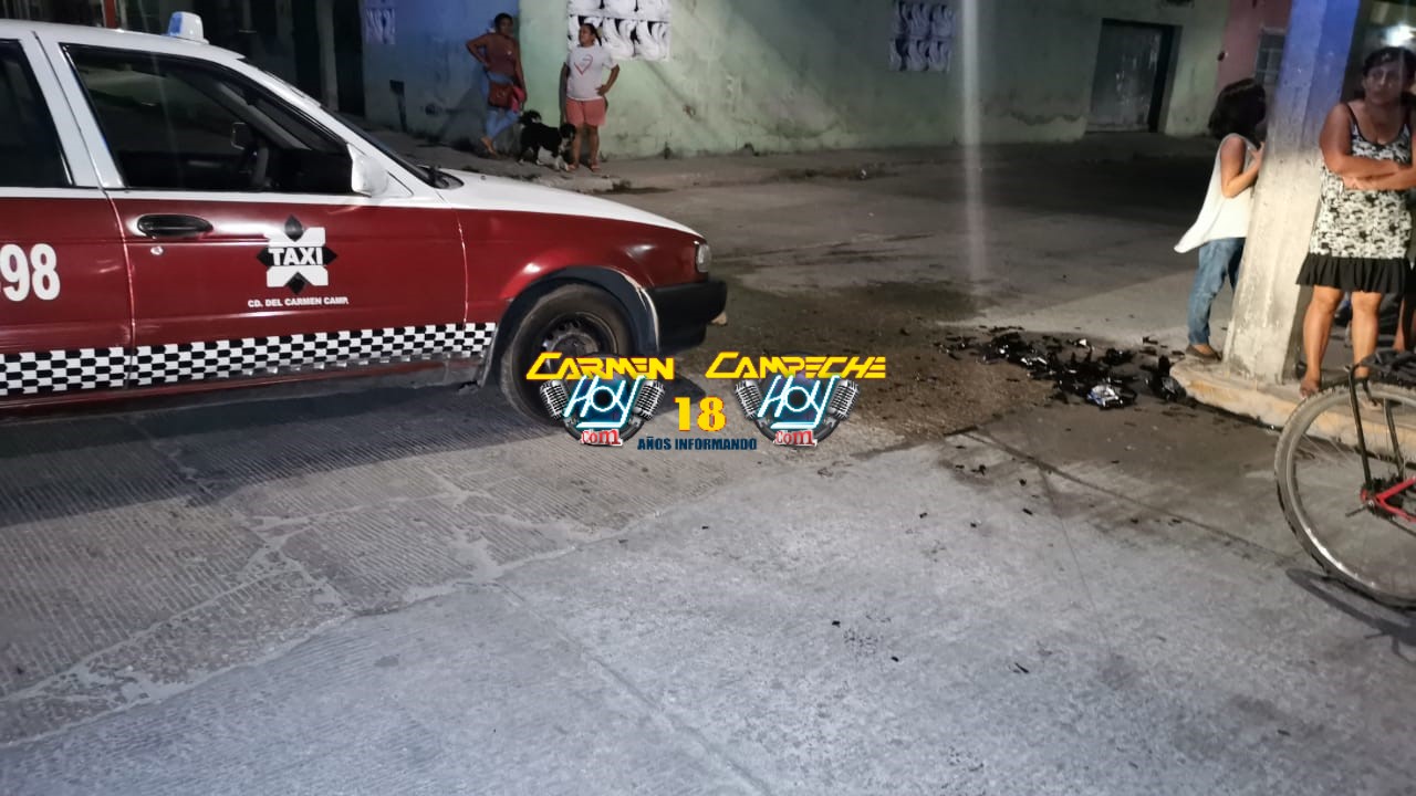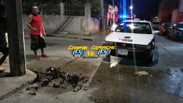 Los hechos se registraron alrededor de las 22:20 horas cuando el conductor de un automóvil Nissan Tsuru, color rojo, con placas 38-59-BFC del estado, con número económico 2698 del sindicato Único de Trabajadores del Volante (SUTV), circulaba en preferencia sobre la calle Cedros Cruze con la calle Caoba, de la colonia antes mencionada con dirección a dejar a algunos pasajeros, al llegar a dicho cruce del guiador de una motocicleta Italika sin placas de circulación cruzó la avenida sin tomar precaución correspondiente colisionando con el coche de renta, resultando con daños materiales de mayor cuantía dejando en la vía pública varias caguamas reventadas.