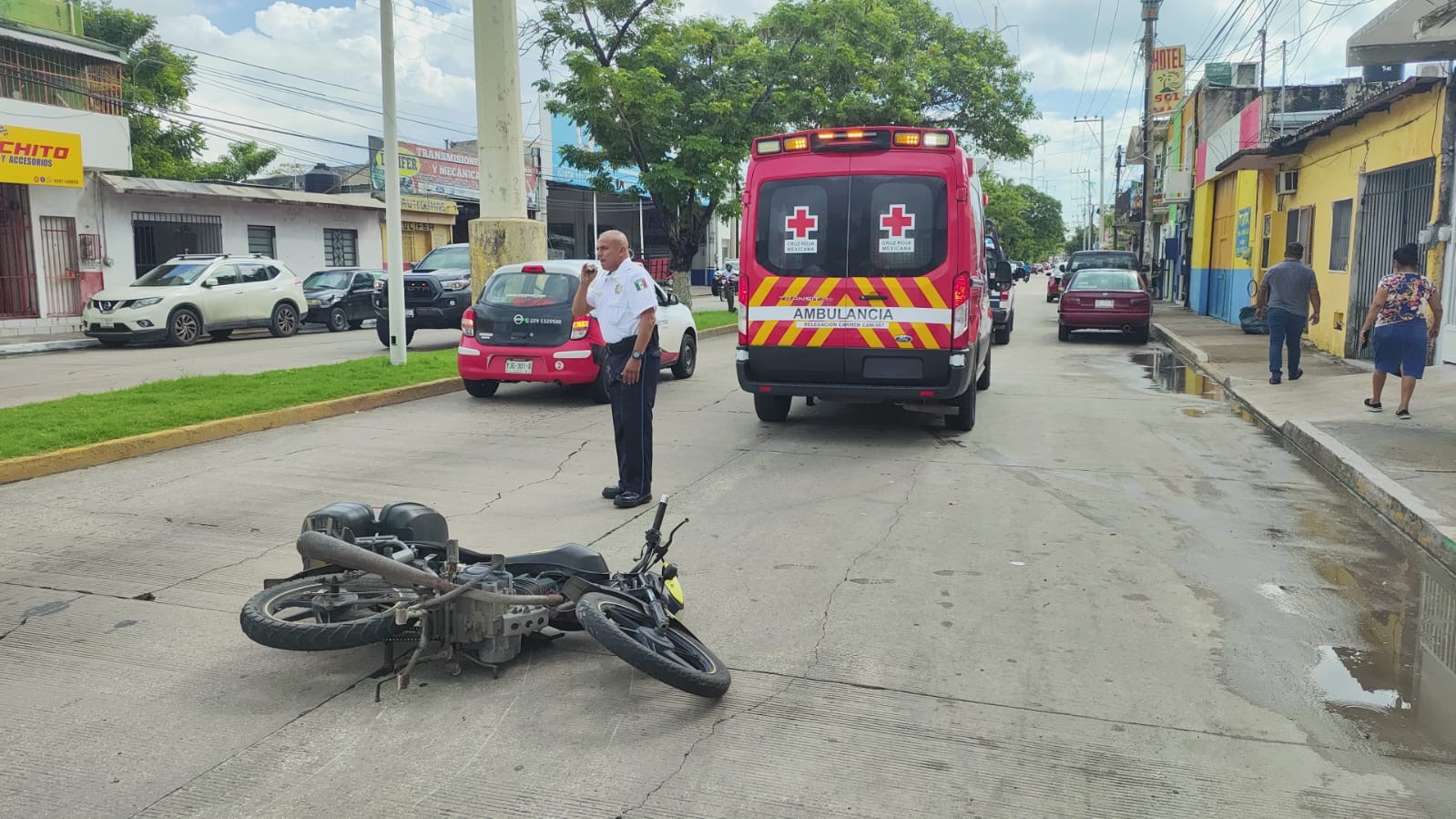 Con golpes en diversas partes del cuerpo resultó un motociclista luego de impactarse contra la parte trasera de un taxi sobre la avenida 10 de Julio, esquina con calle 5 de Mayo, en la colonia Francisco I. Madero de Ciudad del Carmen.