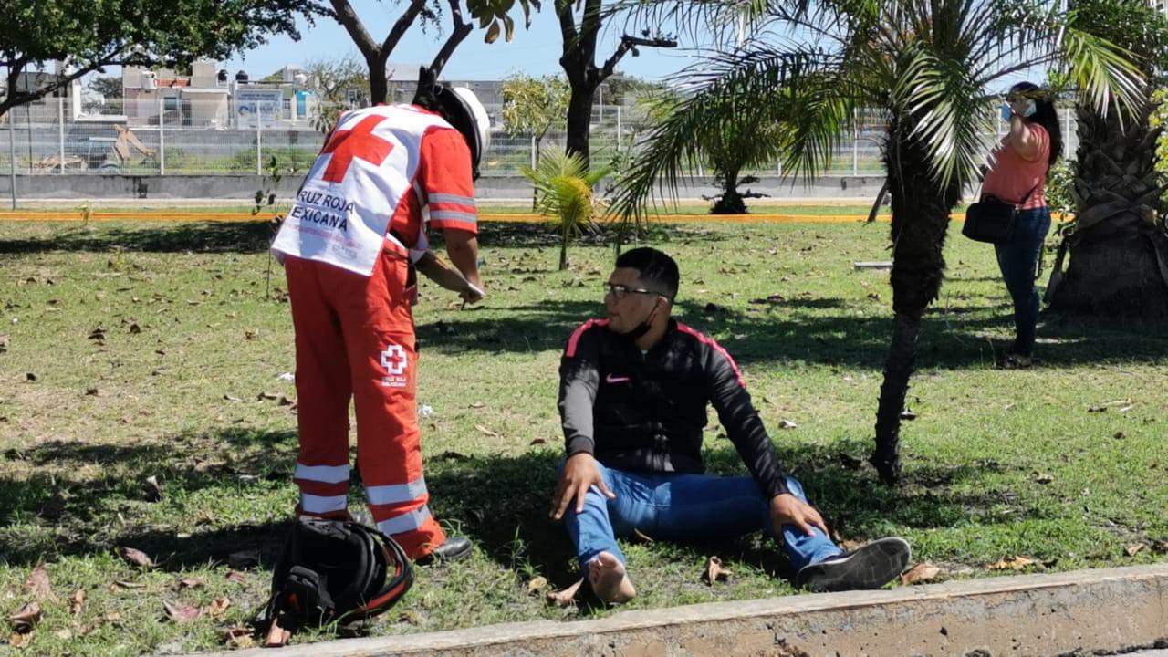 Tras impactarse por alcance, el joven quedó tirado sobre la vía pública, con lesiones en piernas y brazos, motivo por el cual fue necesaria la presencia de paramédicos de la Cruz Roja Mexicana, par su valoración, el joven se negó a ser trasladado a un hospital.