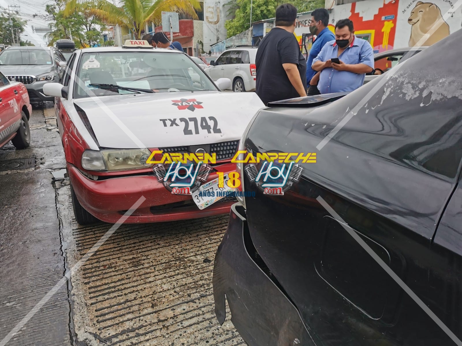 Por no guardar su distancia y conducir en presunto exceso de velocidad, el chófer de un taxi colisionó por alcance contra un automóvil particular en los límites de la colonia primero de mayo.