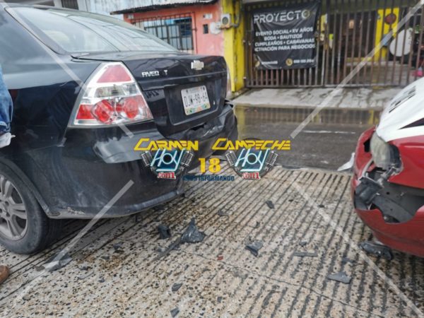 Circulaba con dirección a Playa Norte, desafortunadamente el pavimento anegado debido a las constantes lluvias de estos días, hicieron que derrapara y no logrará frenar a tiempo, impactándose por alcance contra un vehículo particular de la marca Chevrolet Aveo, color negro con matrícula de circulación DJW-98-64 del estado de Campeche.
