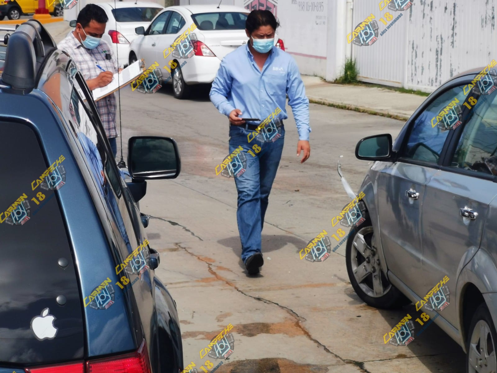 El percance automovilístico ocurrió este viernes, donde según informes de los propios involucrados, el conductor de la camioneta Mitsubishi Endeavor, color azul con matrícula de circulación DKD-46-40 del estado de campeche avanzaba sobre la calle 38-A pero al intentar reincorporarse a la avenida con preferencia de la 55 no respeto el paso a un vehículo Chevrolet Aveo, color plata con matrícula de circulación DKB-14-41 del estado de Campeche y se registró la colisión casi frontal.