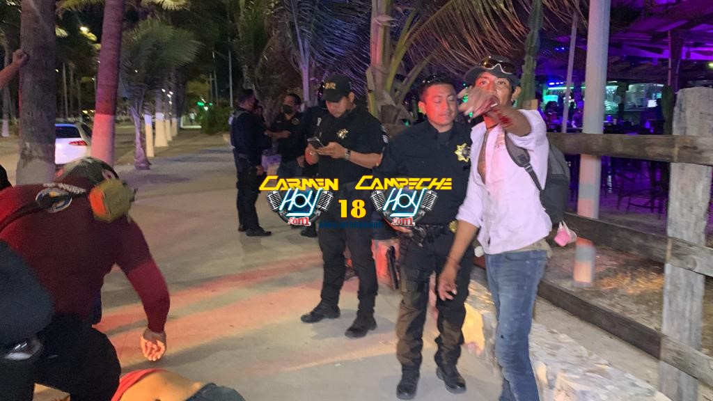 Una pareja fue atendida por paramédicos de la Cruz Roja luego de que protagonizaran un pleito a las afueras del bar “La Isla” ubicado en el malecón costero Nelson Barrera Romellón de la zona de Playa Norte luego de terminar el segundo recorrido de bando.