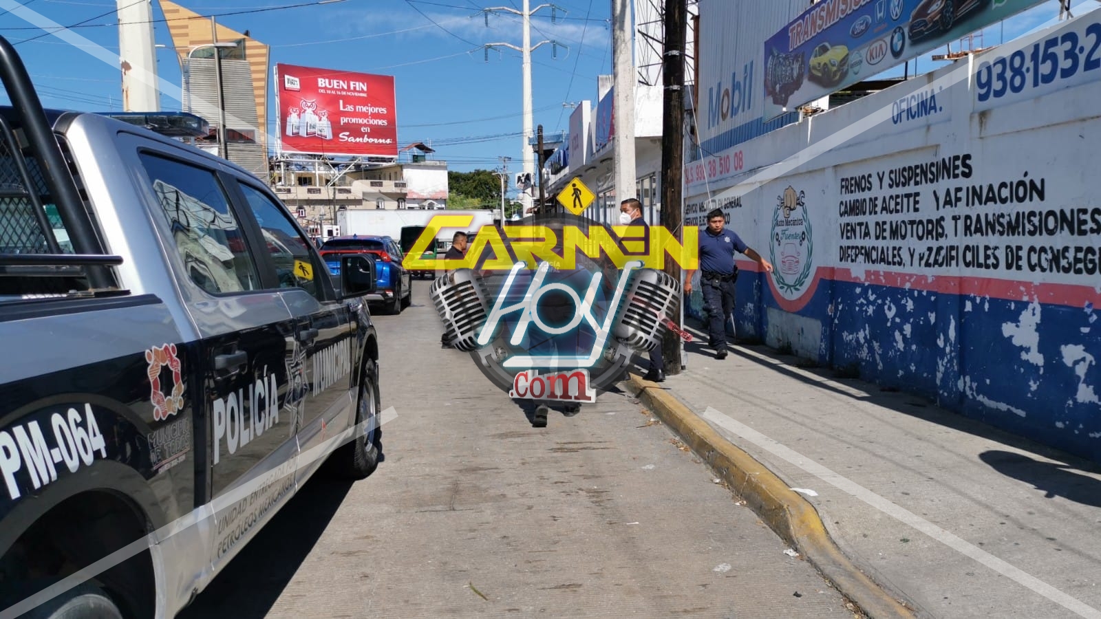 Hechos que se registraron alrededor de las 13:20 horas, cuando presuntamente, dos sospechosos armados con una arma de fuego, asaltaron la farmacia “Yza” situada sobre Avenida Periférica Norte por avenida 10 de julio de la colonia Benito Juárez.
