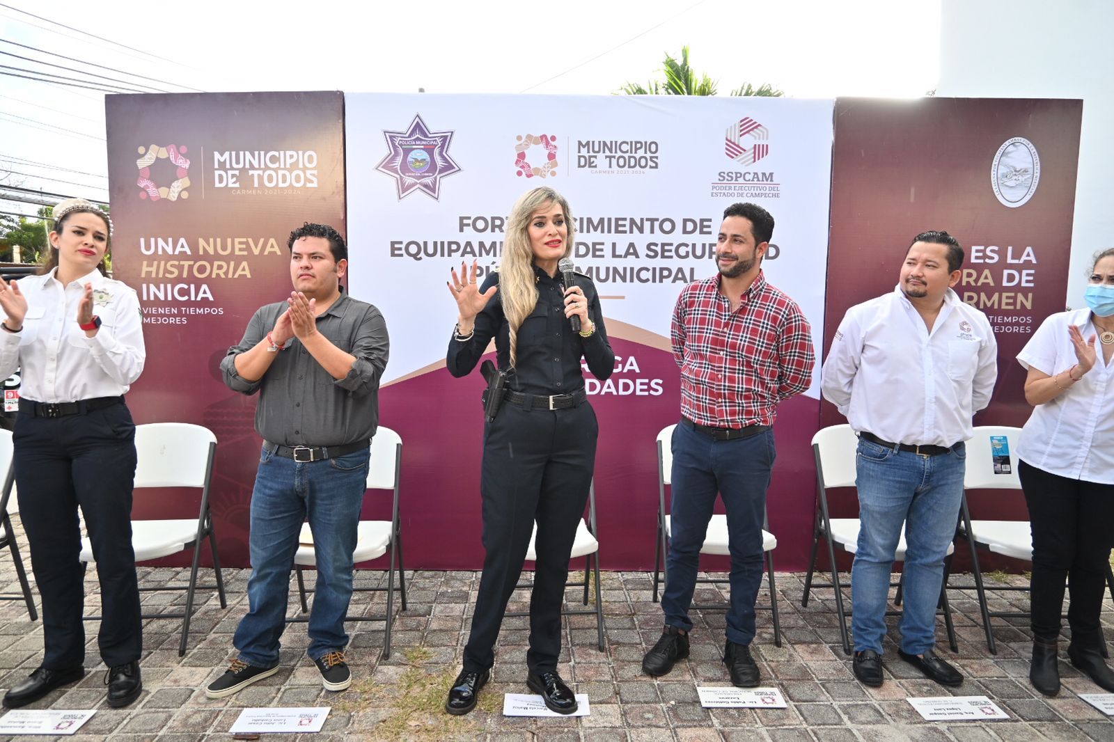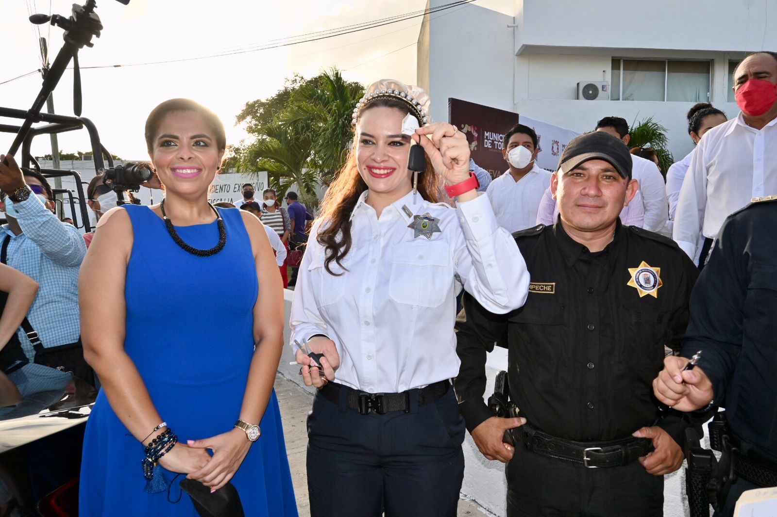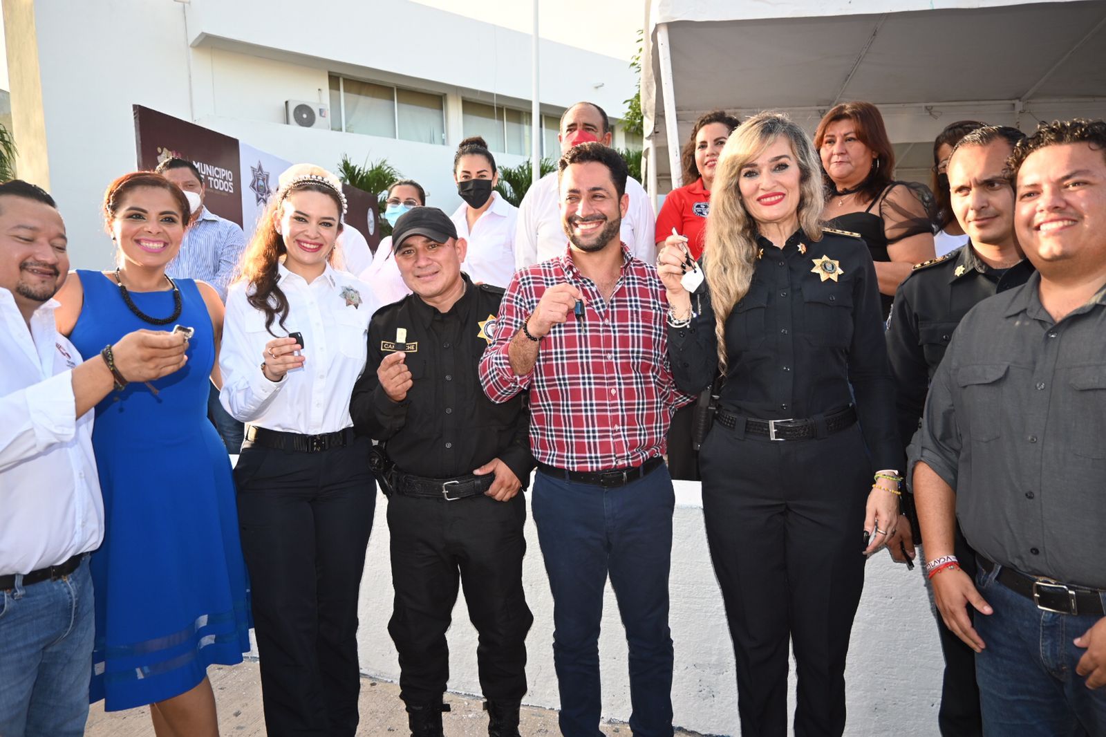 En un evento para dignificar a los elementos policiacos, la tarde de ayer la Secretaria de Seguridad Pública del Estado (SSPCAM), Marcela Muñoz Martínez hizo entrega de cinco unidades para Carmen, al Alcalde Pablo Gutiérrez Lazarus y a la Directora de la Policía de Seguridad Pública, Vialidad y Tránsito Municipal (DSPVTM), Samantha Bravo Muñoz, con el compromiso de mejorar desde el policía de a pie en beneficio de la población.