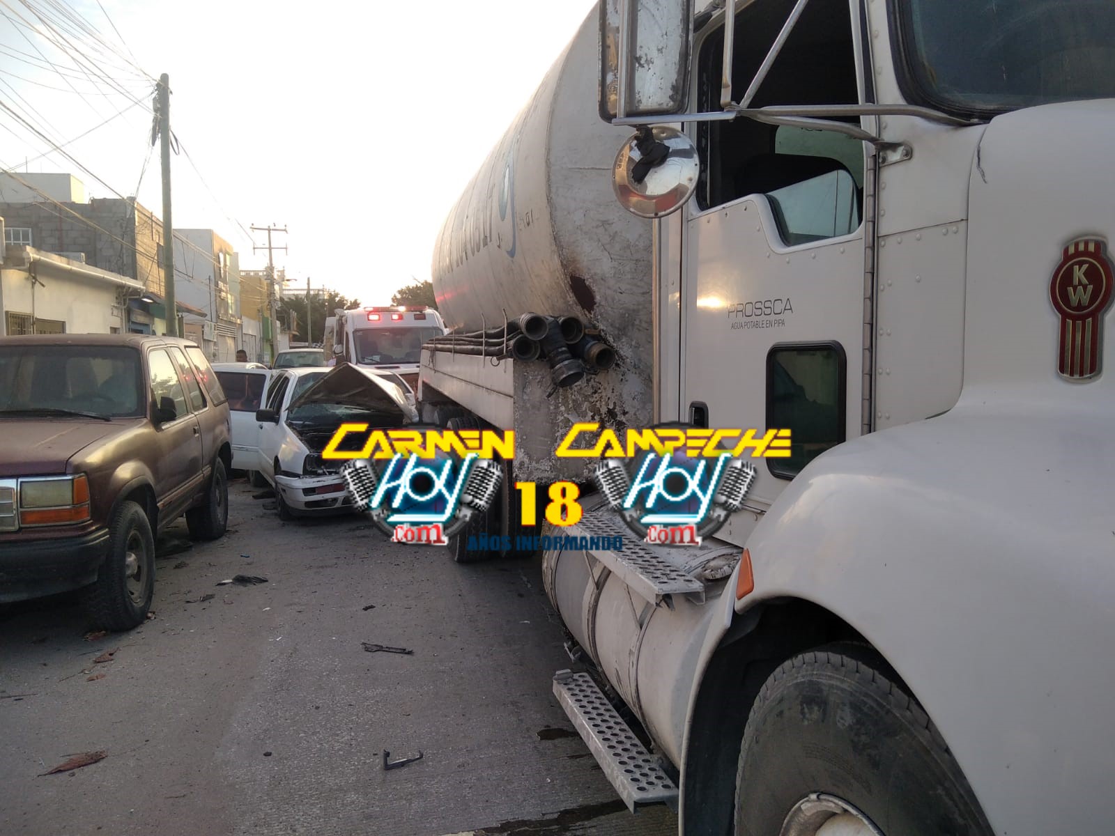 Fue alrededor de las 7:00 horas de la mañana que tres personas, un hombre y dos mujeres acabaron con heridas en la cabeza y laceraciones en la cara y brazos, luego de que el chófer de un auto marca Volkswagen color blanco con matrícula de circulación DNU-113-D del estado de Chiapas conducía a exceso de velocidad sobre la avenida Puerto de Progreso por calle Salina Cruz de la colonia Renovación cerca del Liceo Juárez., lo que provocó que perdiera en control del automóvil y se impactara contra la parte trasera lateral derecha de un camión pipa, de la marca Kenworth con Matrícula de Circulación CR-54-433 del estado de Campeche y un automóvil Chevrolet azul, con Matrícula de Circulación DJZ-43-80 que se encontraba debidamente estacionado.