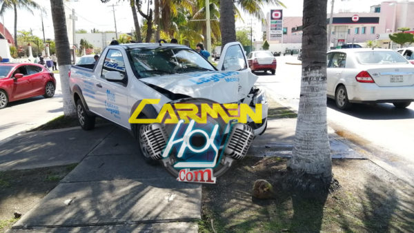 Lo anterior ocasionó que el conductor de la camioneta afectada, volanteara y terminara por subirse al camellón para impactarse de frente contra una palmera, Cabe señalar que los daños fueron de mayor cuantía y las bolsas de aire reventaron.
