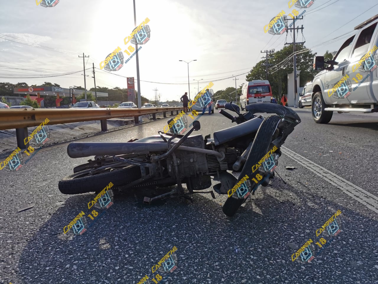 Esto ocurrió sobre la avenida cuatro carriles frente a la terminal de autobuses Medher, el guiador de una motocicleta de la marca “Lifan” color negro con verde y matrícula de circulación WHP1P de Campeche.