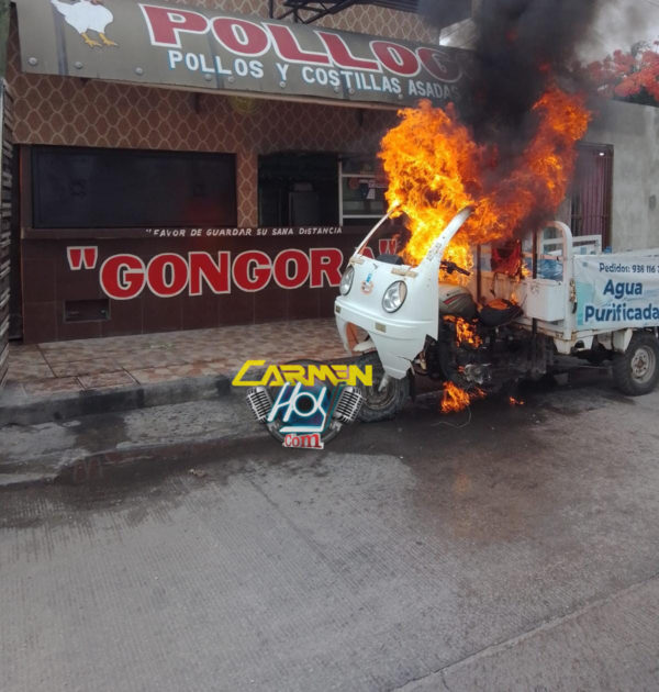 El conductor de una carromoto de la marca Dinamo sin matrícula de circulación que vende agua, se estacionó sobre la avenida Camarón entre calle Jurel y Tiburón de la citada colonia, justamente afuera de un comercio de pollos asados. De pronto, la motocicleta comenzó a arder en llamas si explicarse lo que sucedida, con ayuda de cubetas de agua, lograron sofocar parte de las llamas que envolvían el vehículo motriz, pero desafortunadamente esta terminó en pérdida total por el fuego.
