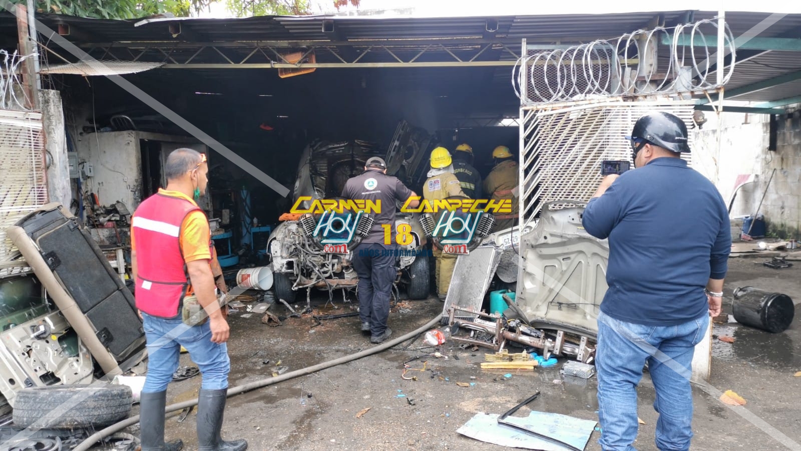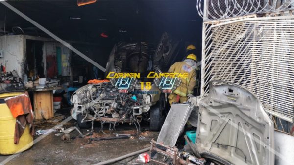 Se registra un fuerte incendio en un taller ubicado en calles de la colonia compositores, según la versión de los propietarios al estar realizando trabajos de corte, una chispa inicio el fuego.