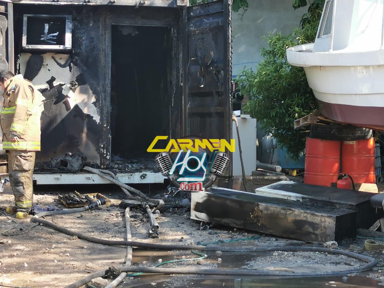 Un contener habilitado como oficinas, ardió en llamas tras una chispa de soldadura en la tablaroca cuando empleados de la compañía “Ssusa” le daban mantenimiento; ante este incendio los cuerpos de emergencia se activaron y acudieron para sofocar las llamas.