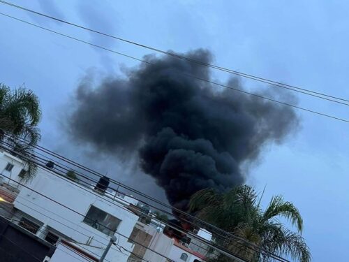 La ubicación precisa proporcionada por personal de la Dirección Municipal de Protección Civil indica que el hecho ocurrió a espaldas del fraccionamiento Las Palmas, y se derivó de un incendio de pastizal.