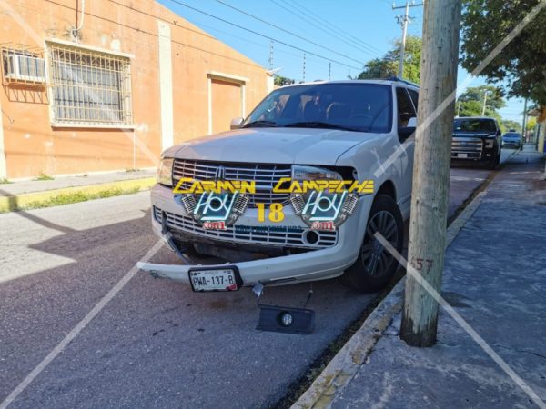 Aparatoso choque de camioneta Lincoln contra vehículo particular en calles de la colonia Tila, los daños generados fueron de mayor cuantía pero afortunadamente sin registro de personas lesionadas.