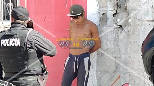 Agentes de la Policía Estatal Preventiva, efectuaron al detención, por lo que el joven fue esposado, abordado a la paila de la camioneta y llevado a la comandancia municipal, dónde pasará encerrado al menos 36 horas, ya que parece que no levantarían cargos en su contra por el delito de robo.