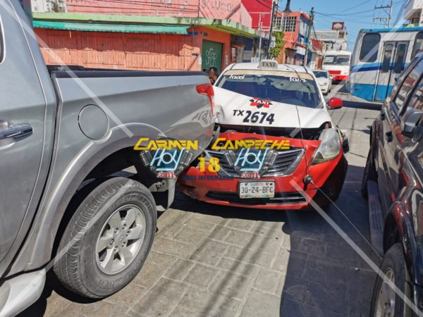El percance vehicular ocurrió alrededor de las 13:15 horas, sobre la avenida 31 esquina con calle 30 de la colonia centro, lugar donde el chófer de un automóvil Nissan versa, marcado con el número económico 2674, matrícula de circulación 30-24-BFC del estado de Campeche circulaba sobre la calle 31 con dirección a la base de taxis de la colonia Centro, justamente al pasar la calle 30, se Impactó por alcance contra una camioneta Mitsubishi L200, color plata, con Matrícula de Circulación CR-42-819 el estado de Campeche.