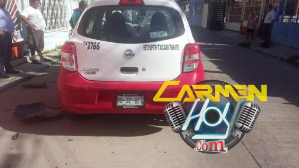 Hace unos momentos el taxi 2766 transitaba en la calle 36 entre 15 y 17 de la colonia puntilla, según su versión dice que se le atravesó un perro y se estampó contra un auto estacionado, sin embargo testigos del lugar argumentan que este venía durmiéndose y con exceso de velocidad hasta chocar contra el auto de la marca Optra Ls por la parte trasera.