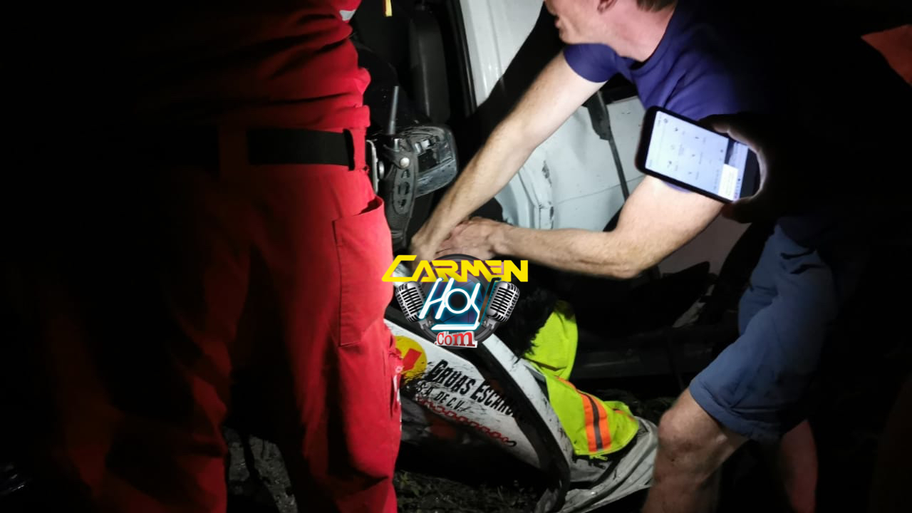 Sobre el kilómetro 22 de la carretera Carmen Puerto real se registra un aparatoso encontronazo entre una camioneta tipo tornado propiedad de grúas Escárcega y un vehículo particular de la marca Peugeot.