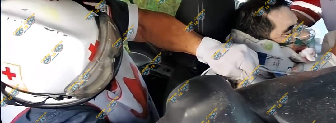 Al lugar llegaron cuerpos de emergencia de Cruz Roja, Paramédicos Tácticos y Protección Civil, todos logrando hacer un buen trabajo para ayudar a liberar la humanidad de Bernardo Olan Dorantes de aproximadamente 55 años de edad, quien tras el choque quedó atrapado en el interior de su auto tipo versa color negro.