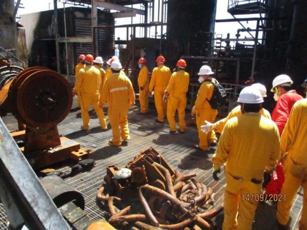 La visita a bordo fue de contrastes. Por un lado el dolor latente por la muerte de compañeros y por el otro, constatar la alta eficiencia y compromiso con la nación de los compañeros que con pasión se dieron a la tarea de rehabilitar las instalaciones y restablecer las operaciones mucho más rápido de lo proyectado.