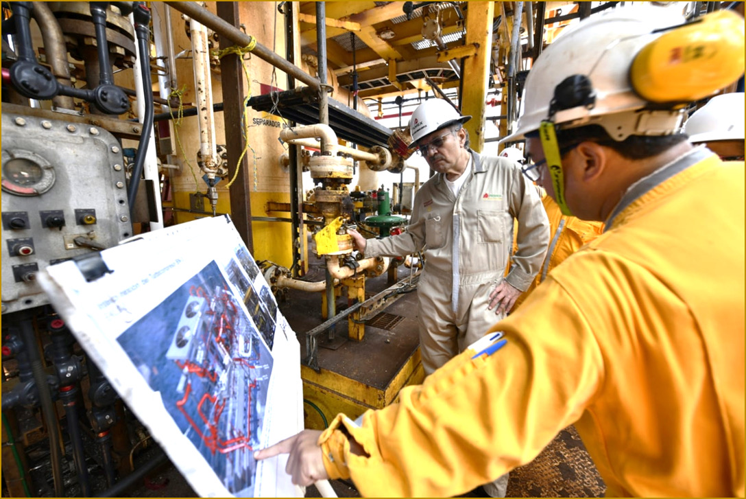El director general de Petróleos Mexicanos (PEMEX), Ing. Octavio Romero Oropeza, realizó una visita de trabajo para inspeccionar el equipo de generación eléctrica de la plataforma E-Ku-A.