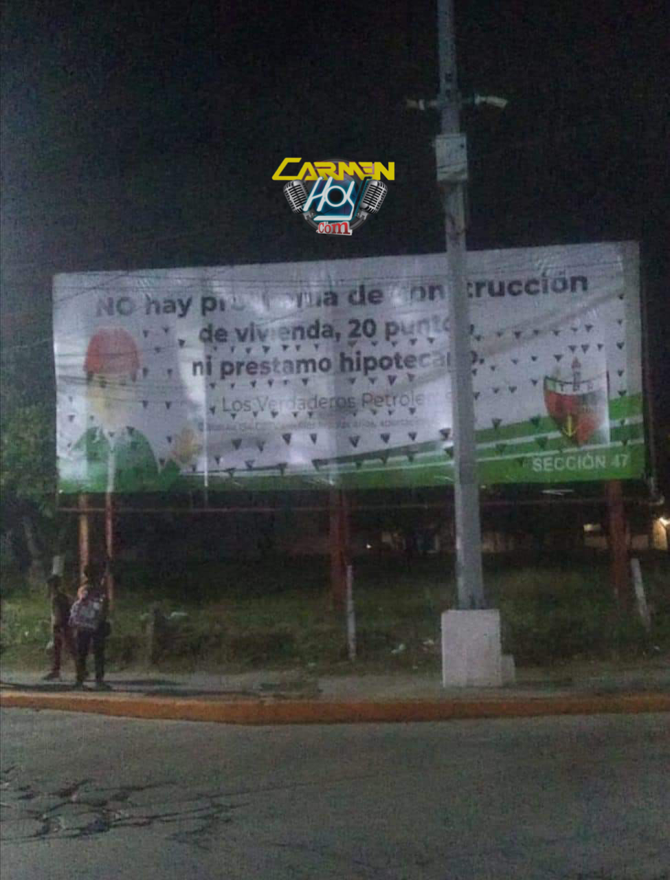 Líderes de la Sección 47 del Sindicato de Trabajadores Petroleros de la República Mexicana, se sumaron en apoyo de sus agremiados y colocaron lonas exigiendo se respete el contrato colectivo de trabajo, esto para dar a conocer a la ciudadanía lo que ocurre, ya que por oficios, diálogos y demás no les han hecho caso.