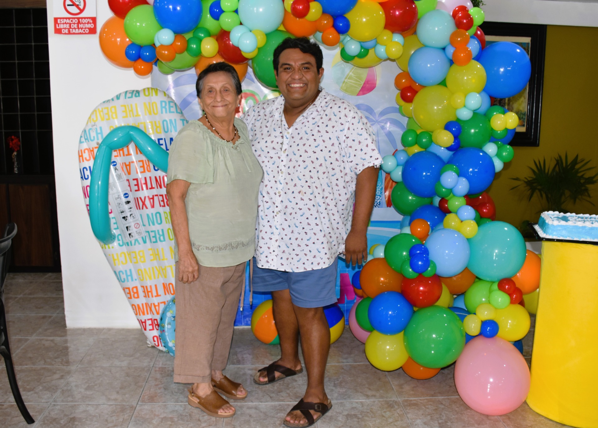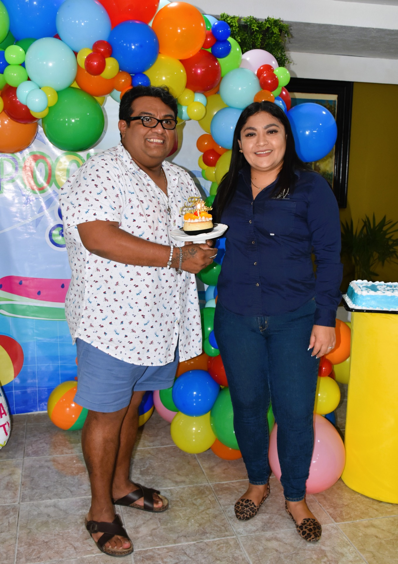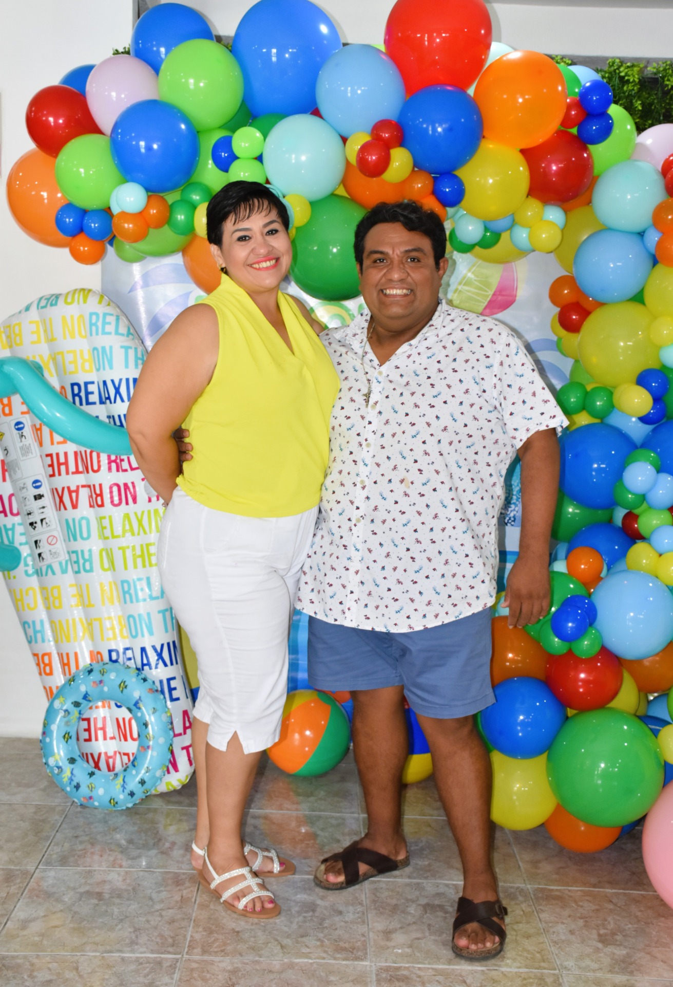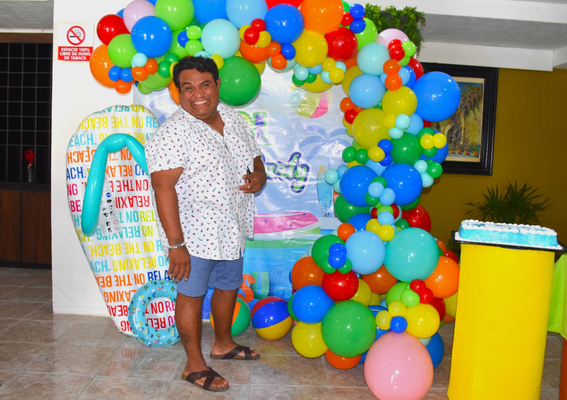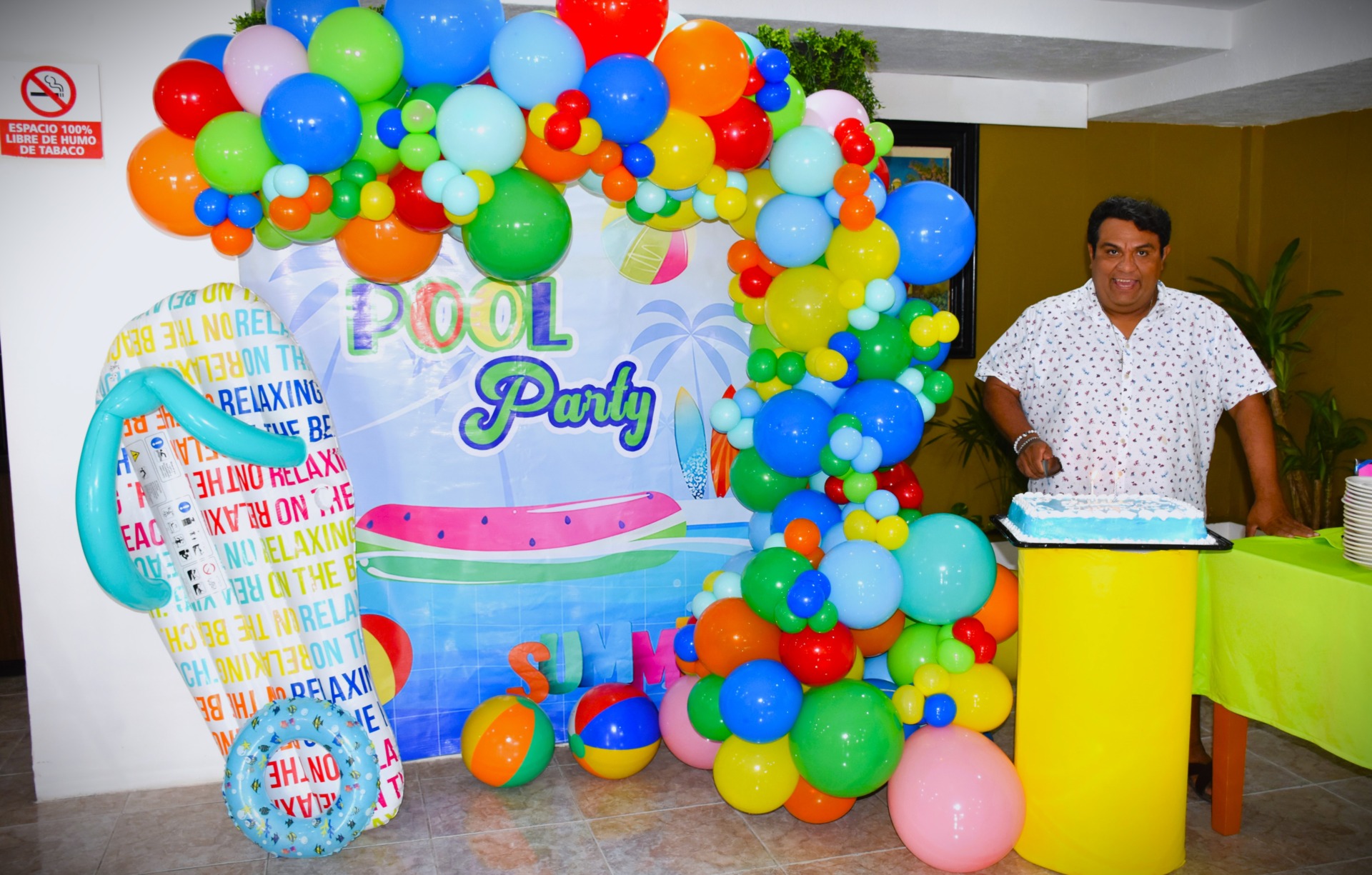 La decoración de la fiesta no podía ser más representativa de la personalidad de “Cuchi”. Las chanclas, su calzado favorito y su inseparable compañero de verano, se convirtieron en el elemento central de la decoración. Una gran chancla inflable llamaba la atención, los invitados se sorprendieron y divirtieron con estos detalles únicos.