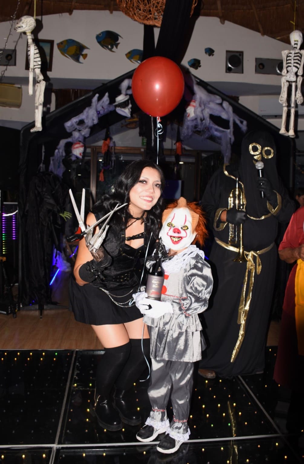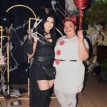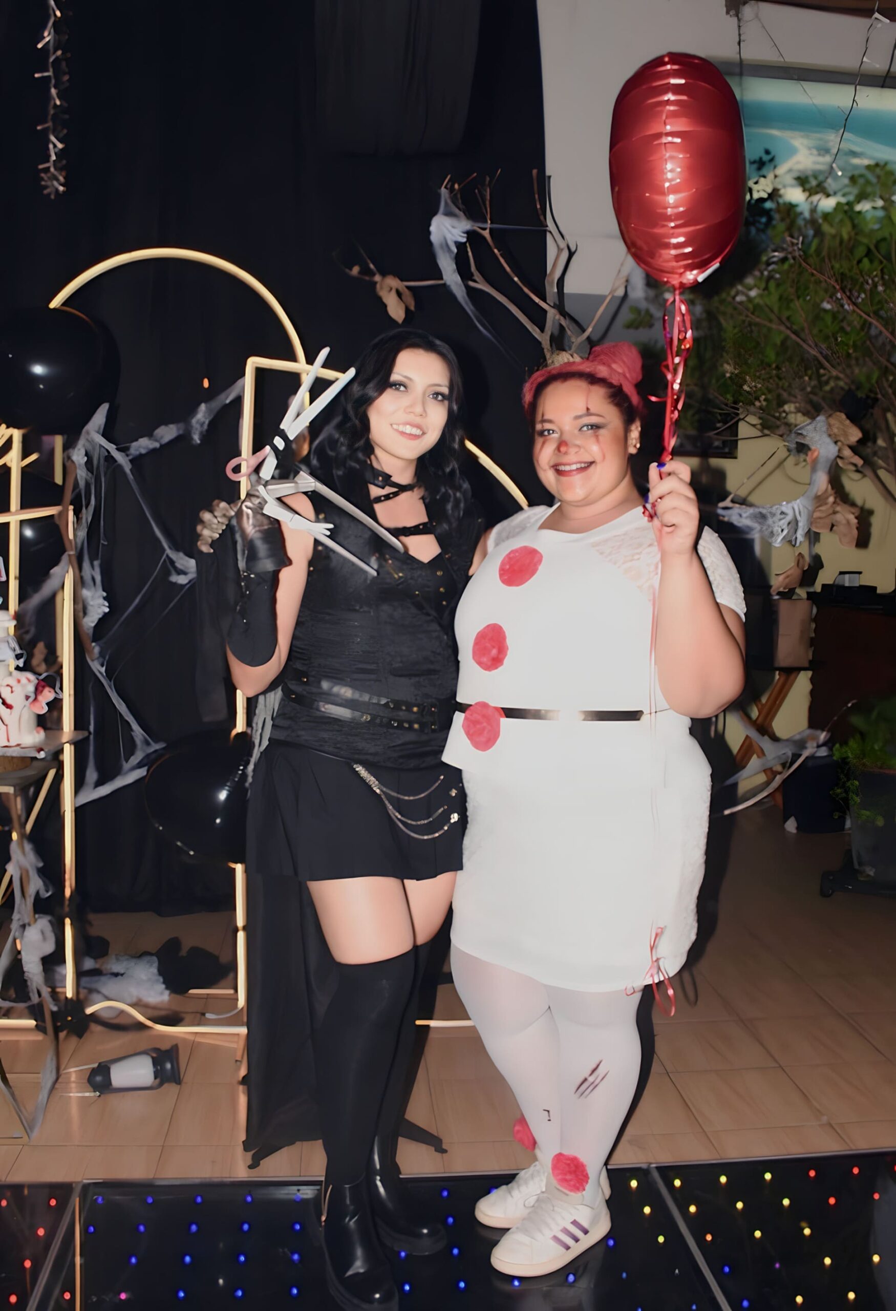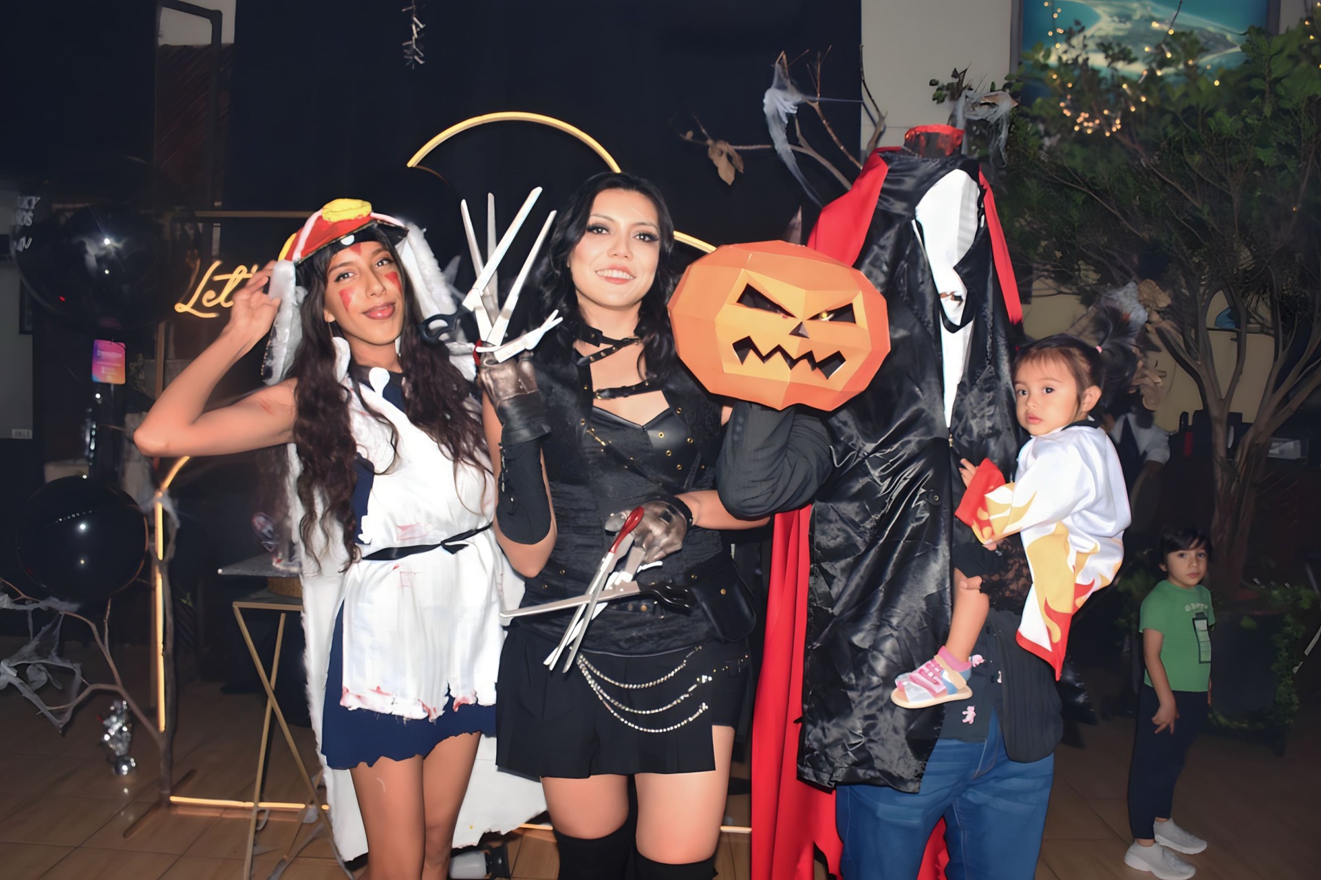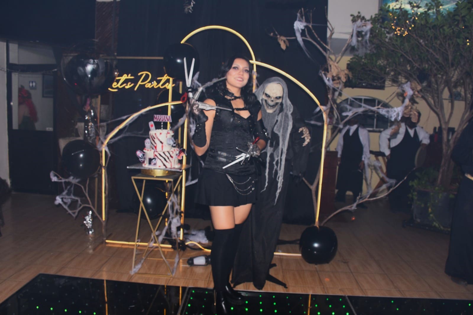 La temática de la noche transportó a todos los asistentes a una época única, ya que los disfraces de Halloween de los años 90’s y 2000’s dominaron la escena. La cumpleañera, radiante y llena de creatividad, se enfundó en el icónico atuendo de Edward, el joven manos de tijera, añadiendo un toque mágico y cinematográfico a la celebración.